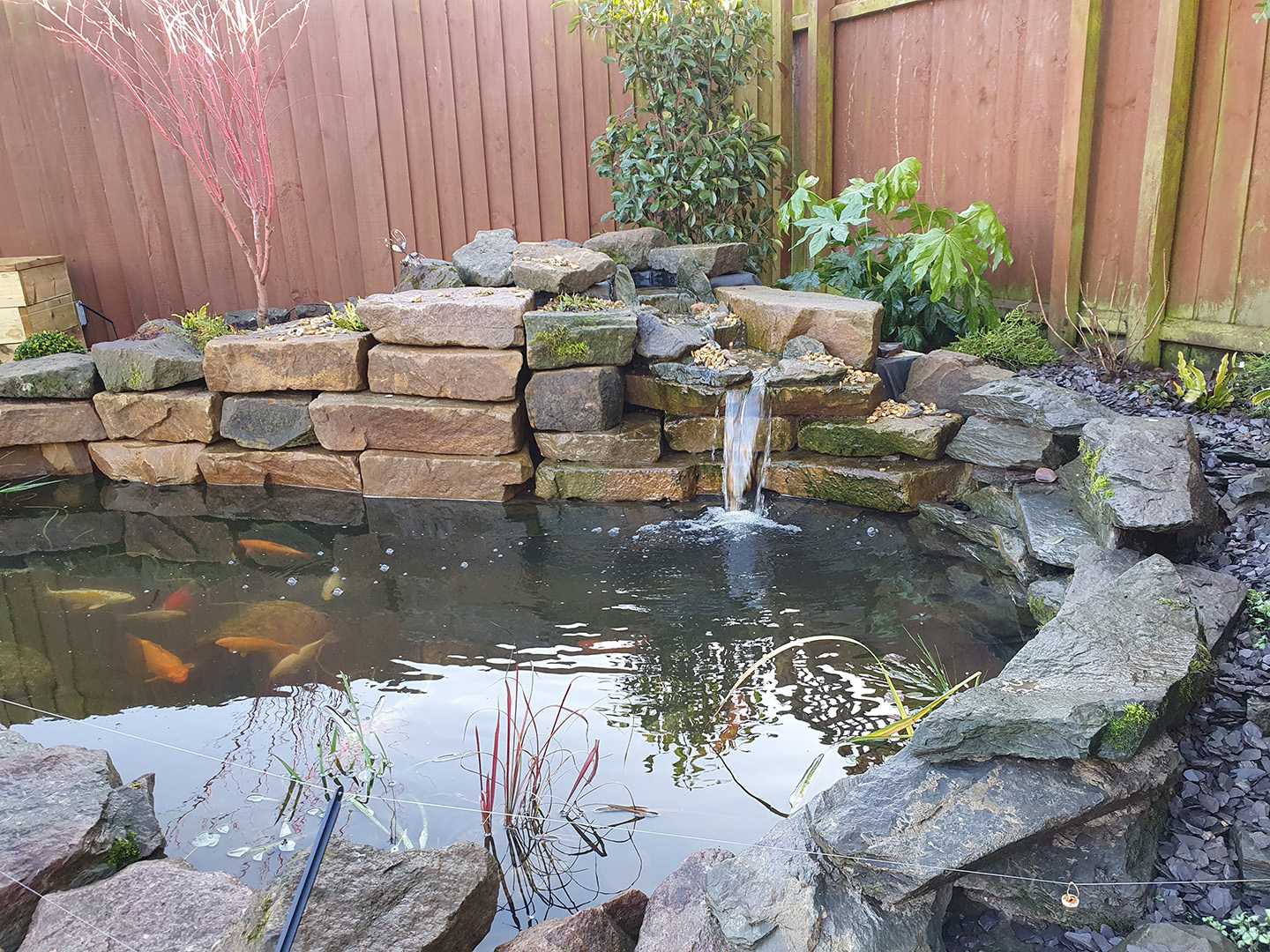 Heron-Proofed Fish Pond and Waterfall:
