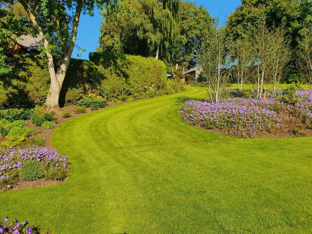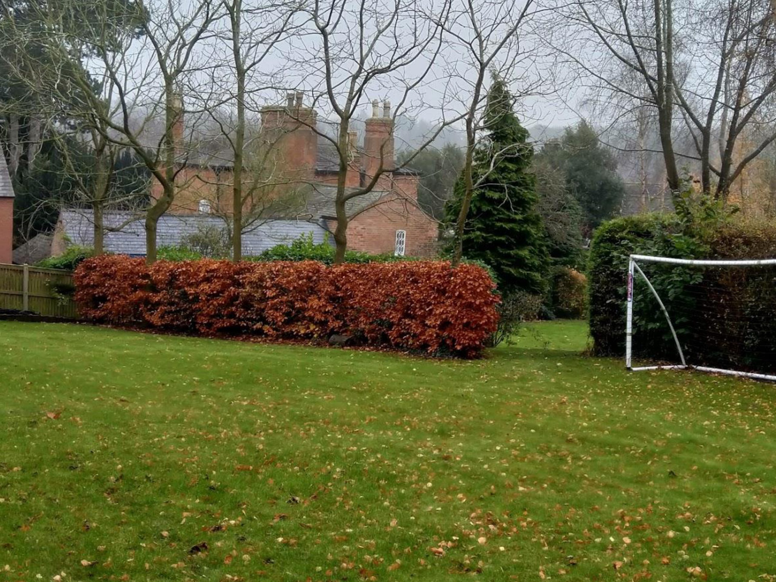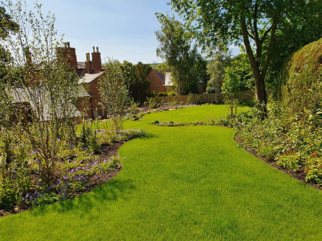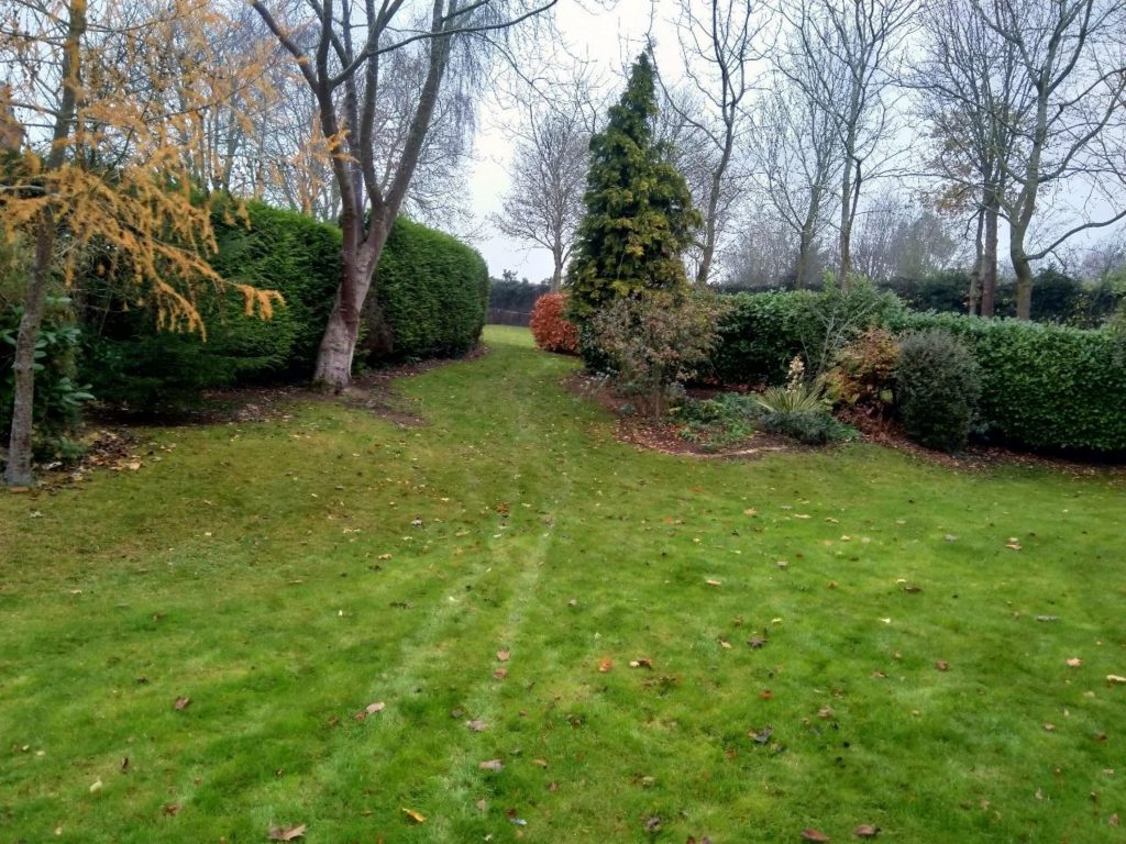 An uneven sloping lawn and the family’s old football pitch, separated by a central hedgerow, have now become a beautiful woodland walk with plenty of interest in every season of the year. Beneath the ancient conker trees, maples and birches are now a number of newly formed island beds and sweeping curved borders planted with a native mix of woodland plants. In wintertime the plants provide a succession of colour right through until spring. Stems are a dominant feature and provide colour in reds, oranges, yellows and green from the dogwoods, contrasting dramatically with the pure white barks of the Himalayan Birch trees and the copper tones of a stunning specimen Tibetan Cherry.